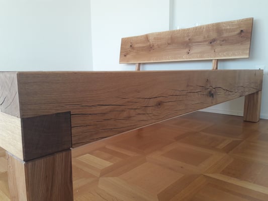 Das Bett wurde aus einer einheimischen Eiche aus der Nähe von Einsiedeln (SZ) angefertigt.