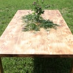 Tisch aus Tannenholz, welches geflammt und anschliessend gebürstet wurde. Somit kommt die Musterung sehr schön zu Geltung.