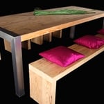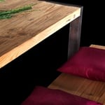 Das Zusammenspiel des Holzes mit dem Unterbau aus Stahl, ergibt einen eleganten Industrial Style.