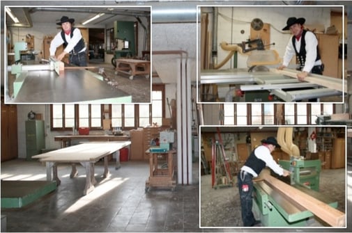 Unser Atelier besteht aus einer eigenen Schreinerei, Zimmerei, Abbundlager und einem grossen Holzlager.